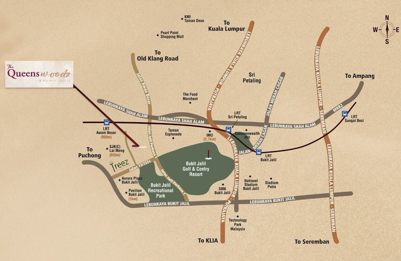 Strategically located just 500 meters from the Awan Besar LRT Station and within walking distance to Pavilion Bukit Jalil Mall, Queenswoodz is a true transit-oriented development (TOD) that places connectivity at your doorstep. The development is also easily accessible via six major highways, including KESAS, MEX, ELITE, and the Bukit Jalil Highway, ensuring excellent road access across the Klang Valley.